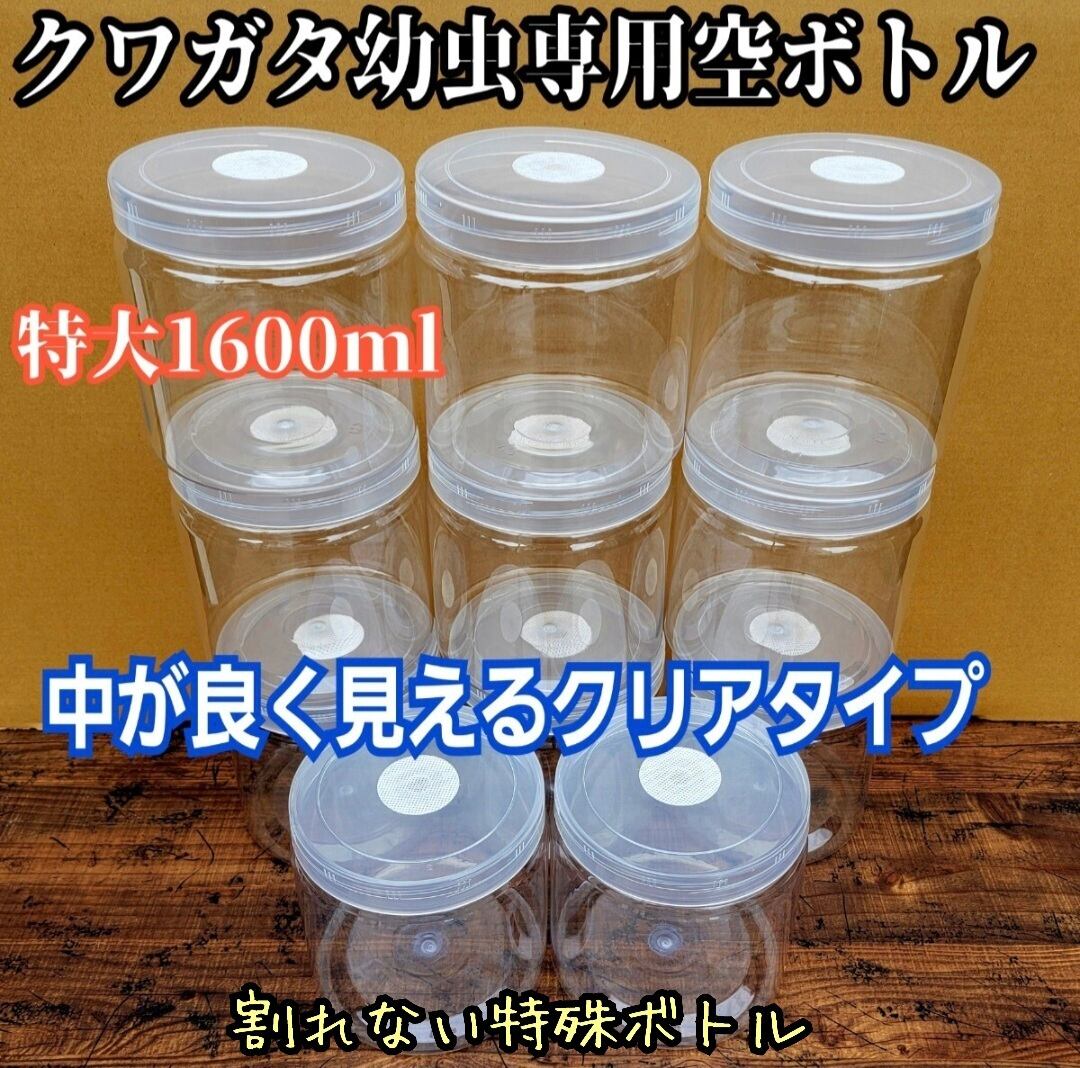 クワガタ幼虫専用 1600ml クリアボトル 【4本セット】中がよく見える!通気性は保ち水分は逃がさない特殊フィルター 落としても割れない!