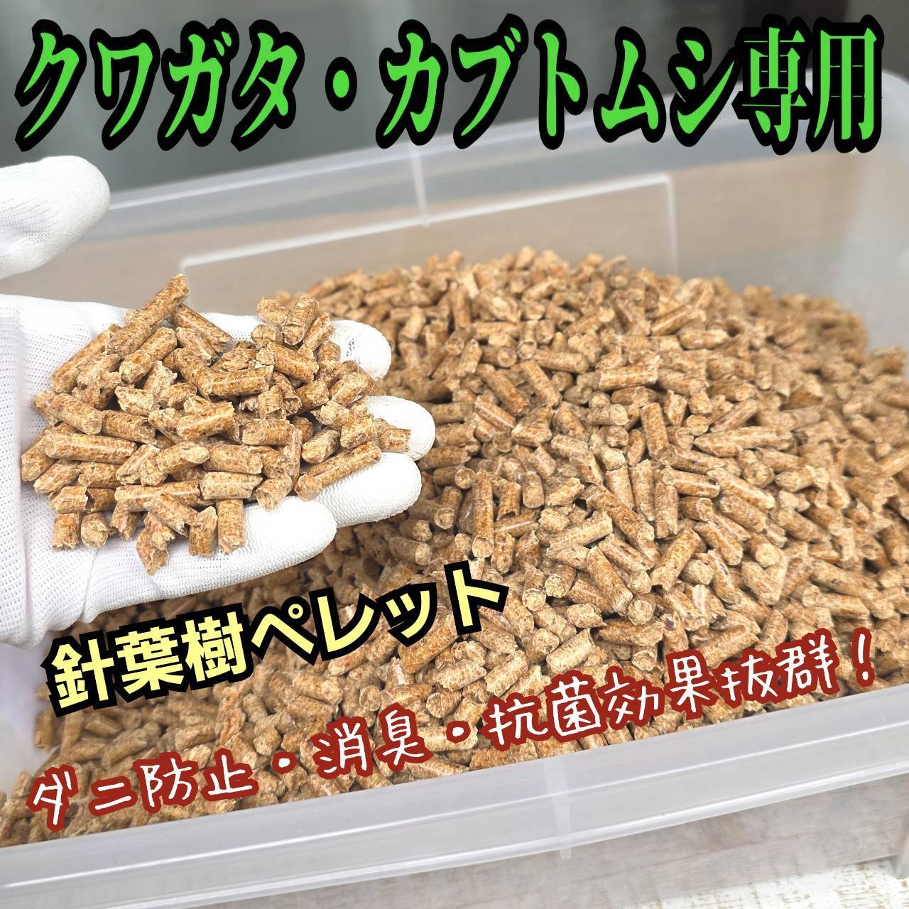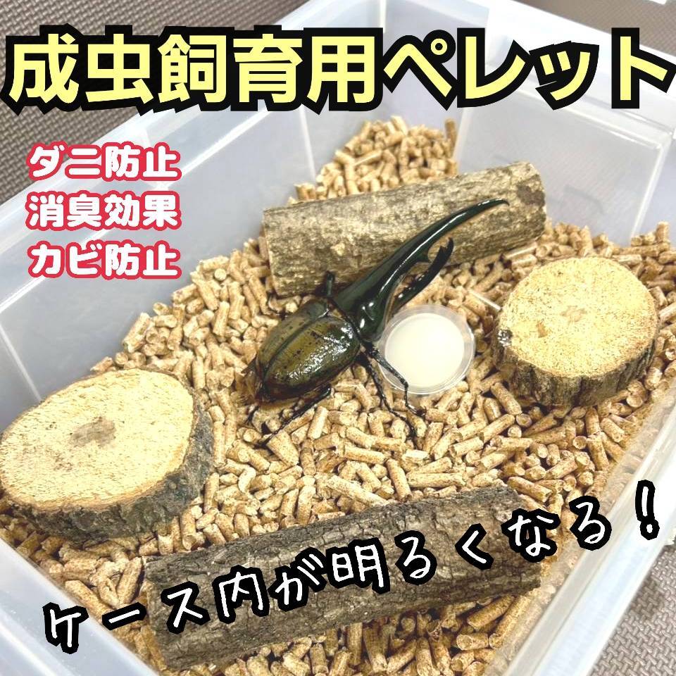 カブトムシ・クワガタの成虫飼育専用に開発された爽やかな香りの針葉樹ペレットの出品です。